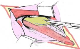 Fig. 4 - Rezectia muschiului cremaster si incizia fibroasei comune (4)