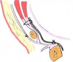 Fig. 16 - Procedeul Mac Vay: sutura planului fascial la ligamentul Cooper (4)