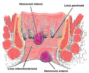 Hemoroizii sunt dilatatii vasculare sacciforme permanente care, din punct de vedere etiologic, pot fi clasificati in esentiali si secundari. Hemoroizii pot fi interni si externi (Fig. 1). Hemoroizii interni prezinta trei grade: gradul I - raman situati pe locul de aparitie; gradul II - coboara in canalul anal la efort; gradul III - prolabeaza la exterior. Hemoroizii reprezinta o cauza frecventa de rectoragie. Hemoroizii interni de volum redus pot fi tratati medical, cu masuri igienodietetice si medicatie antiinflamatorie. Acestia beneficiaza, in absenta complicatiilor, de tratament sclerozant si ligaturi elastice.