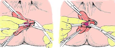 Fig. 9 - Tratamentul trombozei hemoroidale: evacuare cheag