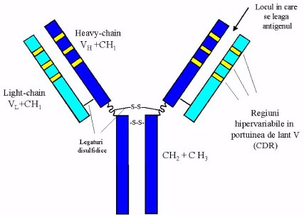 evidentiate numai pentru lantul light chain). In verde este reprezentat