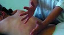 40.Timpul1: degetul mainii drepte realizeaza o miscare in forma de sfert de cerc, pastrand contactul cu pielea si 'impingand' masele musculare.
