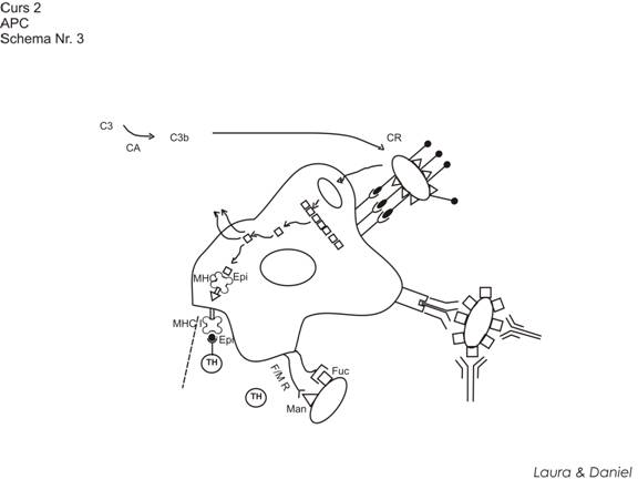 functia de APC e conditionata de receptorii de suprafata si de producerea de MHC II