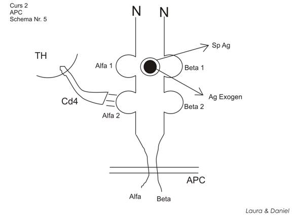 cooperare APC si LTH => legaturi intre MHC II si un contraligand prezent tipic pe TH (CD4) => legaturi CD4- α2