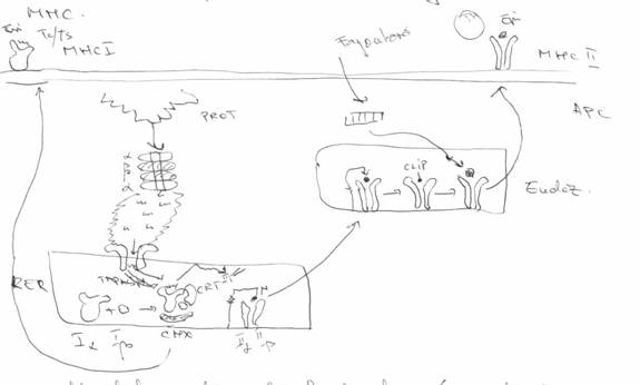 lantul CLIP e indepartat => situsul prezentator de Ag devine liber => moleculele pot fixa epitopii rezultati prin calea endocitara (fagocitoza)