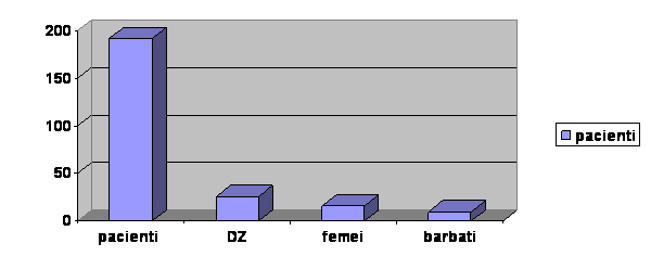 Studiul s-a efectuat folosind datele inscrise in fisele pacientilor cu hepatita cronica cu virus C existenti in baza de date a Spitalului de Urgenta Petrosani, respectiv 192 de bolnavi, luati in evidenta in perioada 1995-2005, din care 114 femei si 78 de barbati, cu varsta cuprinsa intre 20 si 75 de ani, 179 provenind din mediul urban si 13 din mediul rural (graficele 2 si 3). Diagnosticul de diabet zaharat s-a pus pe baza glicemiei a jeune in 2 zile diferite, mai mare sau egal cu 126 mg/dcl sau a glicemiei postprandiale mai mare de 200 mg/dcl. Diagnosticul de scadere a tolerantei la glucoza s-a efectuat la pacientii cu glicemie a jeune peste valorile normale, neincadrabila in diagnosticul de diabet zaharat si s-a facut prin administrarea per os a 75 g glucoza, cu determinarea glicemiei la 2 ore post-ingestie, considerandu- se valori patologice mai mare sau egal cu 140 mg/dcl si mai mic de 200 mg/dcl. S-au exclus din studiu pacientii cu ereditate diabetica, cu diabet zaharat tip 1, precum si cei cu obezitate.