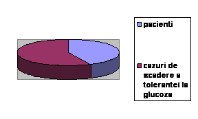 . predomina in cadrul modificarilor metabolismului glucozei scaderea tolerantei la glucoza (36 de cazuri de scadere a tolerantei fata de 26 de cazuri de diabet zaharat);