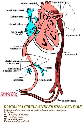 De la placenta sangele oxigenat trece prin vena ombilicala catre ficat.