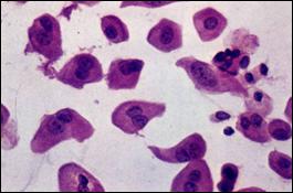 La examenul frotiului se gasesc celule superficiale mari, uni- sau multinucleate, celule intermediare, rare celule bazale, celule de provenienta renala, prostatica sau din uretra.