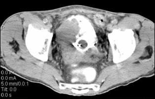 postero-lateral stang. Figura 38. CT pelvin - Tumora voluminoasa in hemivezica