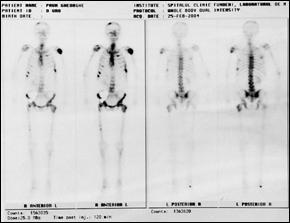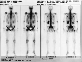 Figura 48. a,b) Scintigrafii osoase la un bolanavi cu tumori vezicale si metastaze osoase multiple.