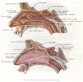 cavitati, numite fose nazale. Septul nazal este format din lama perpendiculara