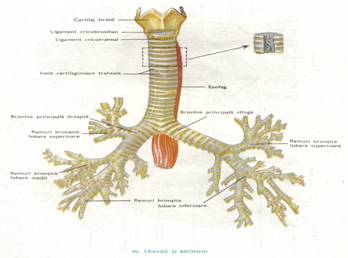 tracheae) in bronhii, care la randul lor se vor bifurca dicotomic in plaman in
