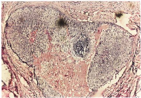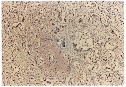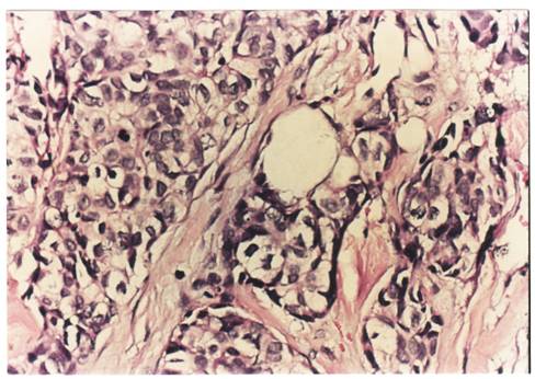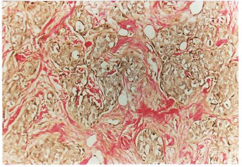 Pentru examenul histopatologic piesele de mamectomie sunt prelucrate prin imparafinare si colorate cu Hematoxilina-Eozina sau, pentru observarea mai buna a tesutului conjunctiv, cu Van Gieson.