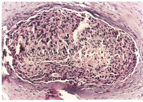 Pe preparate colorate, la microscopul optic se observa urmatoarele imagini :