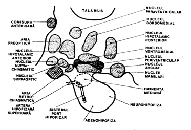 Complexitatea functionala a sistemului hipotalamo-hipofizar este conditionata de un anumit substrat anatomic si vascular, de conexiunile cu alte formatiuni nervoase (sistem limbic) sau endocrine (epifiza) si de sensibilitatea structurilor sale la retroactiunea hormonilor ovarieni.