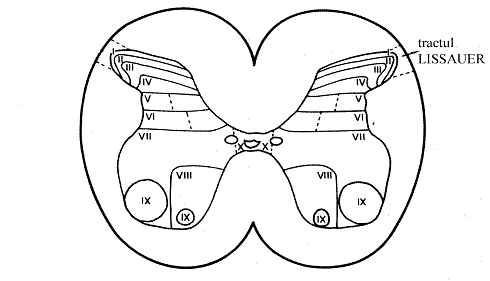Fig. 1. Citoarhitectonica substantei cenusii spinale - Rexed.