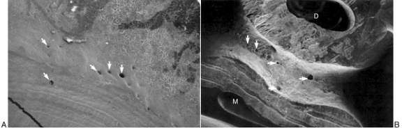 In urma observatiilor facute la microscopul electronic, diametrul canalelor furcale a molarilor mandibulari variaza de la 4 pana la 720m.