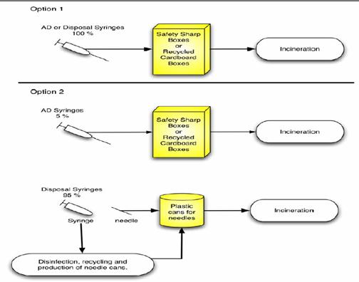 Figura 1: Modalitati de distrugere si gestionare a instrumentarului ascutit