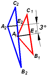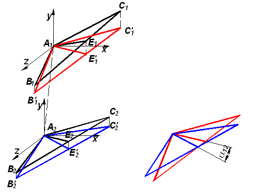 q proiectarea triunghiului ABC pe un plan de nivel, astfel incat rezulta un triunghi A'B'C', cu inaltimea corespondenta A'E' (culoare albastra in figura 3.a)