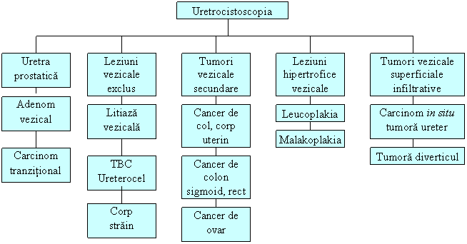Subliniem obligativitatea efectuarii uretrocistoscopiei la vedere, eventual cu camera video care permite o marire a imaginilor si explorarea amanuntita a peretelui vezical anterior si a colului vezical.