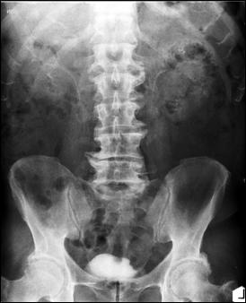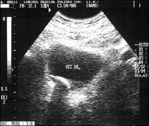 Figura 54. Imagine radiotransparenta (2,5/1,8 cm, vizibila pe cistografie) |