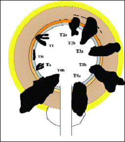 - biopsii randomizate in prezenta citologiei pozitive, tumora voluminoasa sau non-papilara