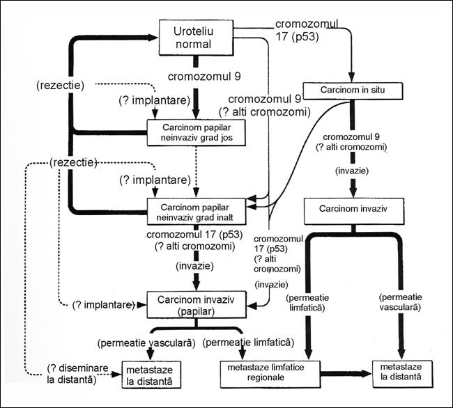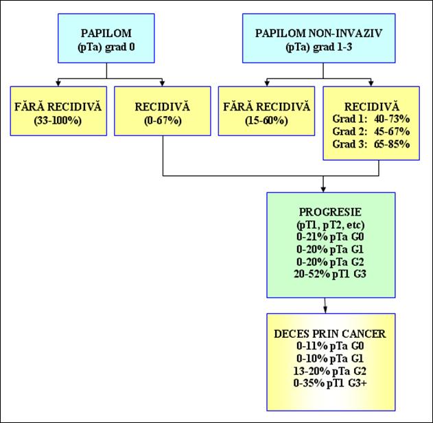 Pentru pacientii cu pTa grad jos de anaplazie riscul este de 2-3 % [ Pentru tumori vezicale de grad inalt riscul interesarii aparatului urinar superior este de 10-36