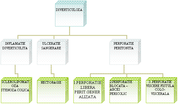 1. Majoritatea diverticulilor nu sufera modificari lezionale ramanand la stadiul necomplicat, fara expresie clinica.