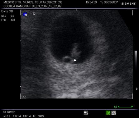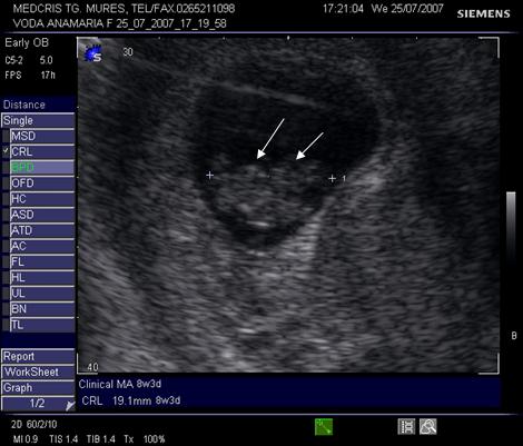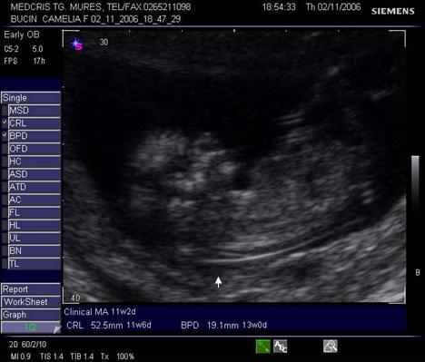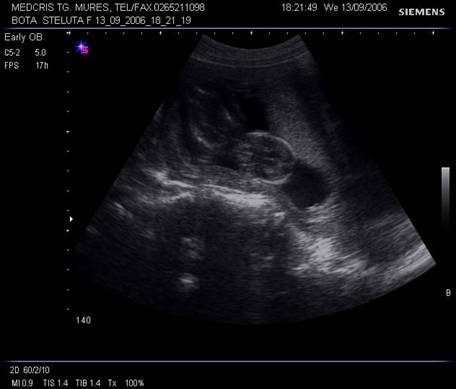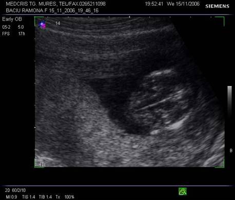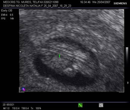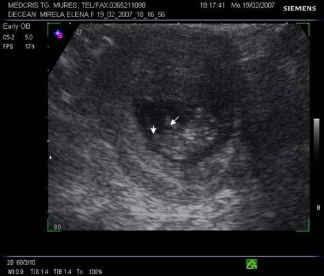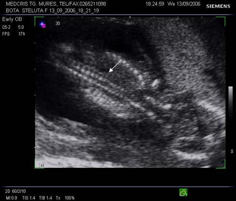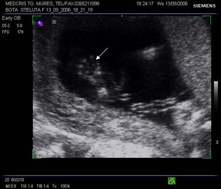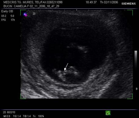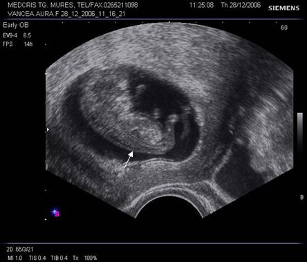Fig. nr. 14. Sarcina 7 sapt( sageata indica embrionul )