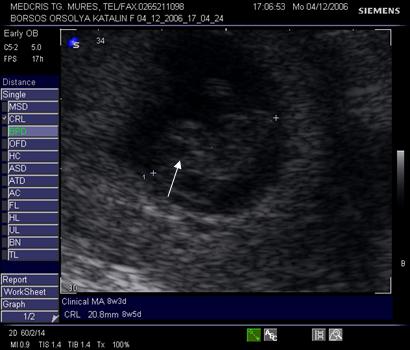 embrion fara activitate cardiaca si CRL > 5 mm - sarcina "oprita" in evolutie;