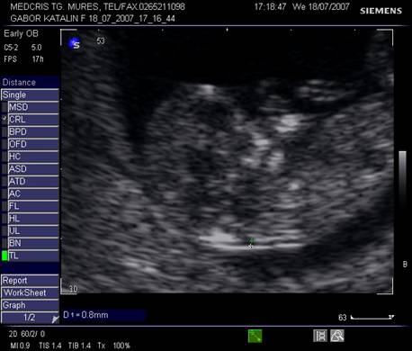 Fig nr.25. Masurarea pliului nuchal la 11 sapt