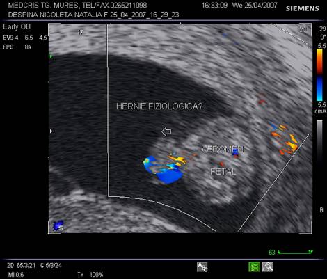recunoasterea herniei fiziologice abdominale fetale ce apare la 9 - 10 sapt si dispare la 12 - 13 sapt