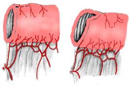 Rezectiile foarte joase, din vecinatatea valvulei ileo-cecale, pun probleme datorita vascularizatiei speciale din aria lui Treves. Clasic, se admite ca dupa o rezectie intestinala joasa, capatul distal al ileonului terminal trebuie sa aiba cel putin 20 cm pentru a fi anastomozat in bune conditii; cand acest capat este mai mic, in trecut se recomanda rezectia lui in totalitate, urmata de o anastomoza ileo-colica pe ascendent sau transvers. In realitate, ultimii centimetri din ileonul terminal sunt vascularizati de artera cecala, care poate suplea vascularizatia in aceasta zona de risc, chirurgul trebuind sa observe cu atentie daca exista o buna vascularizatie a capatului de anastomozat. Este necesara o identificare exacta a arcadelor vasculare din mezenterul de la acest nivel, sectiunea de la nivelul acestuia trebuind sa menajeze carefulul vascular din mezenter.