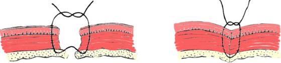 sutura in doua planuri, cu fire separate (Fig. 8), surjet total si surjet sero-seros, continuu sau intrerupt (Fig. 9, Fig. 10);