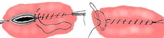 Fig. 9 - Sutura intr-un singur plan cu fir continuu, extramucos (4)