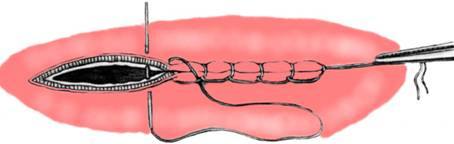 Fig. 10 - Sutura intestinala cu surjet intrerupt (4)