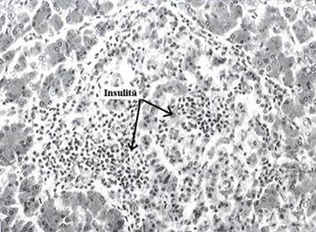 Insulita (descrisa in 1964) este o leziune specifica DZ tip 1 care dispare dupa un an de la instalarea clinica a acestuia. Consta in infiltratia difuza cu limfocite a insulelor pancreatice. Pe masura progresiei bolii in insulele Largerhans nu mai exista decat celule a si d (figura 8) Autoanticorpii - anti celule insulare pancreatice.