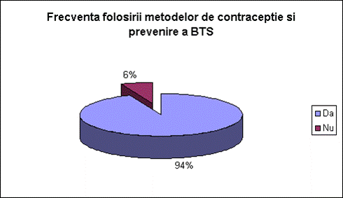 In randul celor care folosesc metode de contraceptie si prevenire a BTS se observa clar predominenta celor care folosesc prezervativul (64%) in fata celor care folosesc CCO. Acest lucru se datoreaza faptului ca prezervativul ofera si protectie impotriva BTS si, probabil, si faimei proaste a CCO (efecte secundare cum ar fi cresterea in greutate)