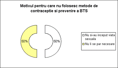 In perioada de timp in care s-a efectuat studiul (15 decembrie 2003-30 ianuarie 2004), din cele 62 de studente participante 94% folosesc metode de contraceptie si dintre cele 6% care nu le folosesc,nici una nu considera un motiv suficient de bun impotrivirea partenerului sau pretul ,jumatate nu si-au inceput viata sexuala ,iar cealalta jumatate nu le considera necesare.