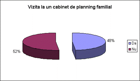 Totusi, se observa ca procentul celor care nu au mers niciodata la un cabinet de planning familial (52%) , apropiat de al celor care au mers (48%) este mai mare, desi numai 8% se declara dezinteresate, iar 26% se multumesc cu ceea ce afla de la altii. Tragem concluzia ca nivelul de informare si de preocupare la adresa propriei persoane este sub asteptari. Aceasta concluzie este sustinuta de procentul mare al celor care arunca responsabilitatea detinerii unui prezervativ pe umerii partenerului.