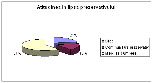 In lipsa prezervativului 18% continua fara el, asumandu-si riscul imbolnavirii sau al unei sarcini, 21% se opresc si 61% merg sa cumpere.