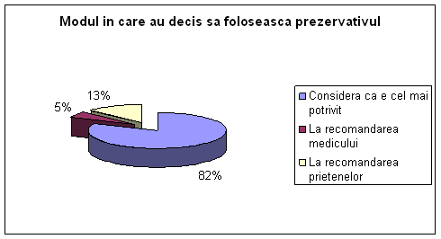 Modul in care au facut aceasta alegere a fost la majoritatea (82%) prin decizie proprie, iar restul le-au ales la recomandarea medicului(5%) sau a prietenelor (5%)