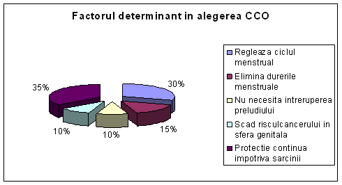 Avantajul major pentru cele care au ales CCO este protectia continua impotriva sarcinii(35%) , urmata de reglarea ciclului menstrual(30%) si eliminarea dismenoreeie(15%).
