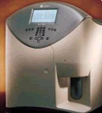 Se introduce proba de sange de cercetat in lacasul corespunzator al dispozitivului automat de analiza, aspirarea cantitatii necesare fiind realizata automat