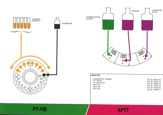 coagulometru (fig.7.3.), reactivi, produs biologic de analizat