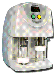 Se introduce proba de cercetat in lacasul corespunzator al dispozitivului automat de analiza (fig.7.4.), aspirarea cantitatii necesare fiind realizata automat. Pipetarea reactivului declanseaza masurarea, care se va opri automat in momentul in care se detecteaza cheagul.