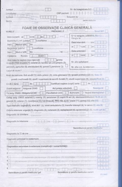 Datele culese prin anamneza si examenul clinic sunt notate in foaia de observatie.