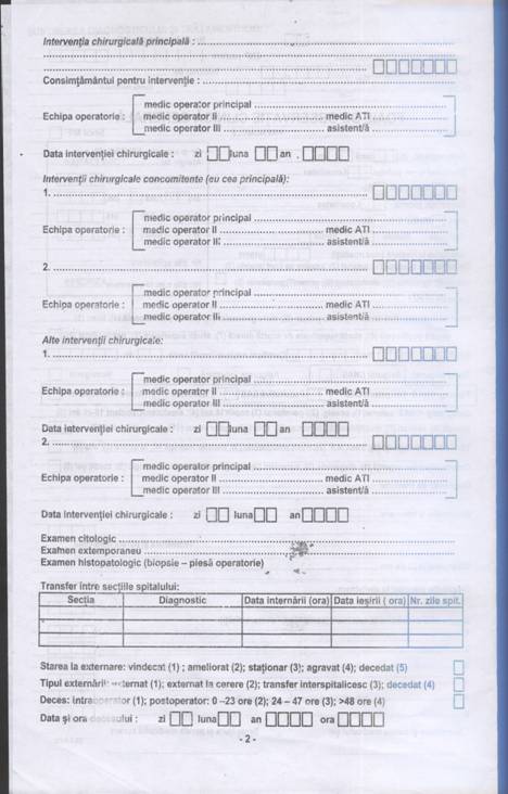 Se vor mentionat interventiile chirurgicale, modul de evolutie postoperator si eventualele sechele.