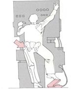 De exemplu: atunci cand lucratorul trebuie se actioneze o pedala, va fi obligat sa se lase cu toata greutatea pe celalalt picior: astfel asupra coapsei va actiona o greutate care este egala cu 2,5 x greutatea corpului.